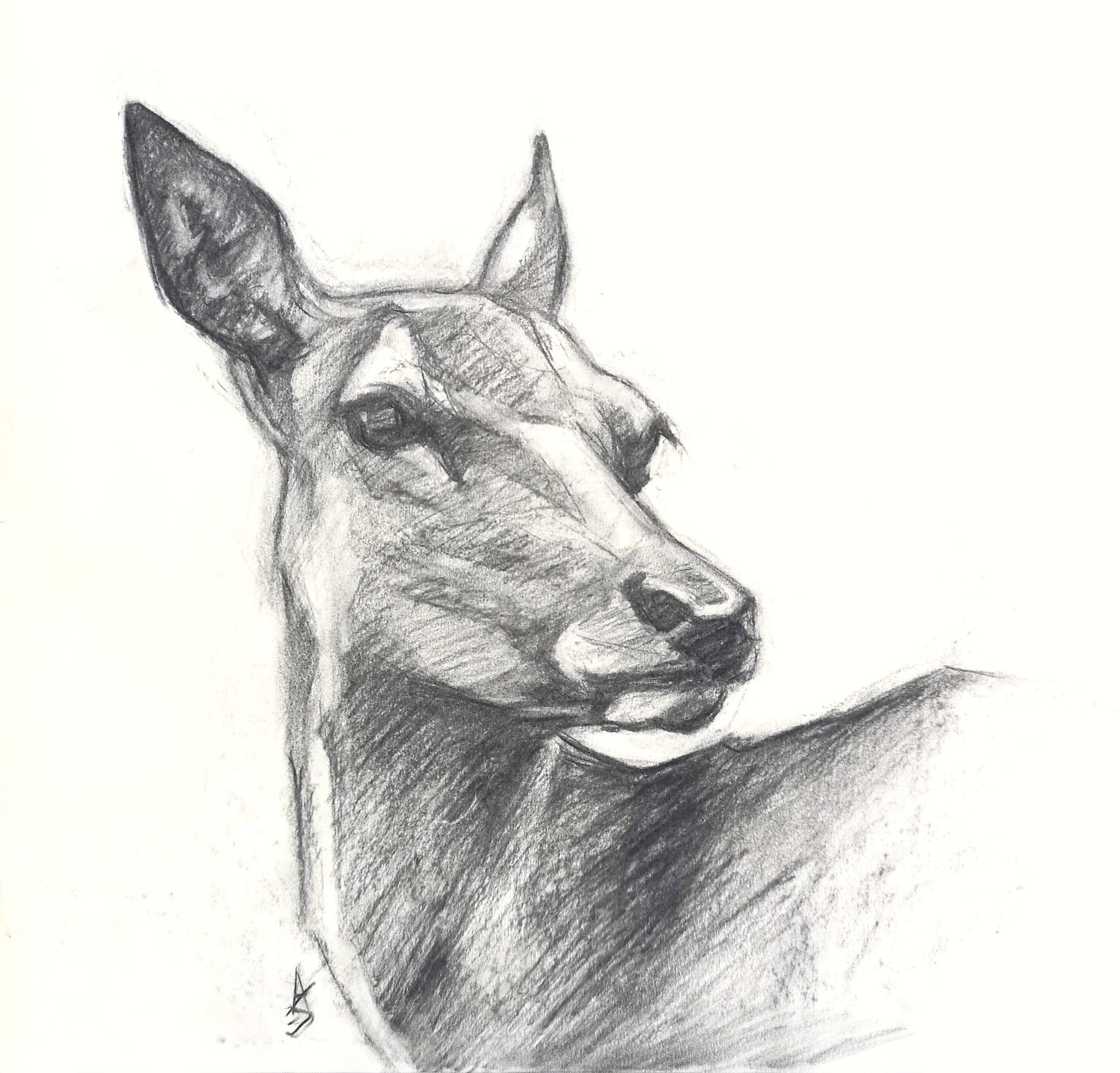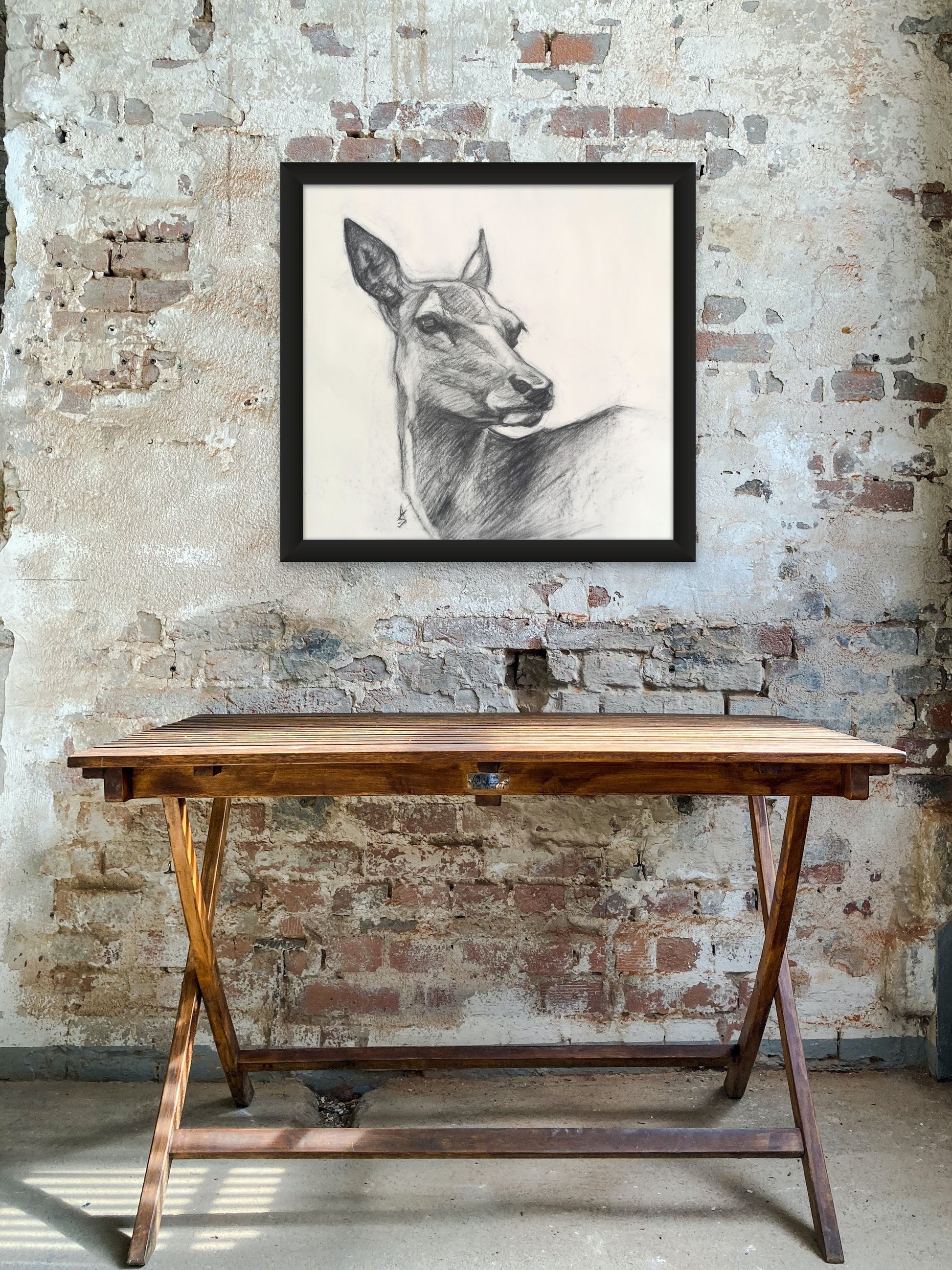(2023) Original charcoal drawing of a beautiful female red deer.