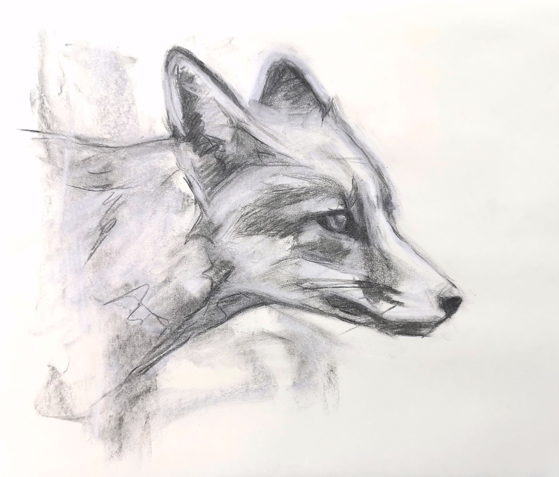 (2023) Original charcoal and chalk drawing of a british red fox on 95gsm sketch paper, inspired by my love of the animals and wildlife around us.