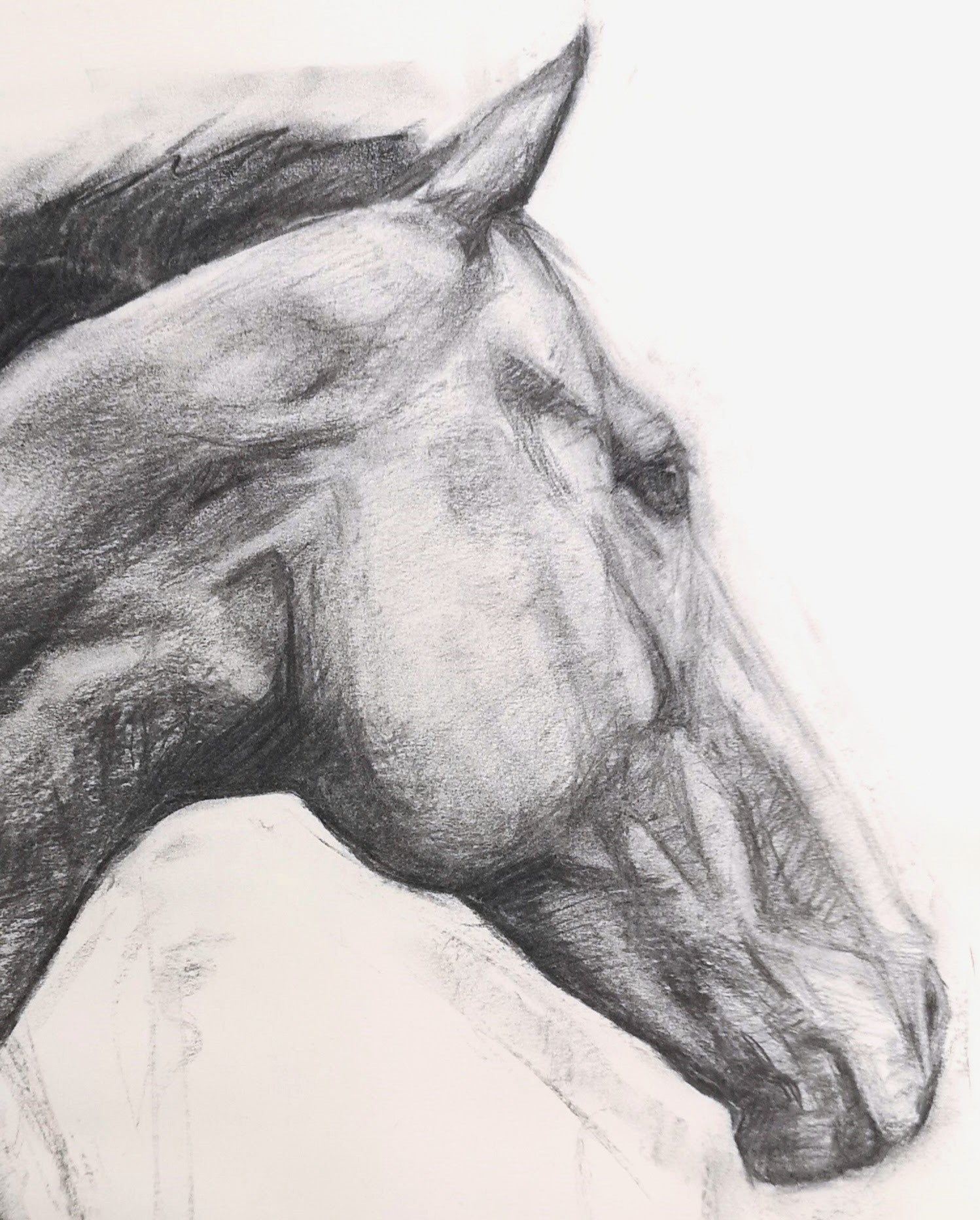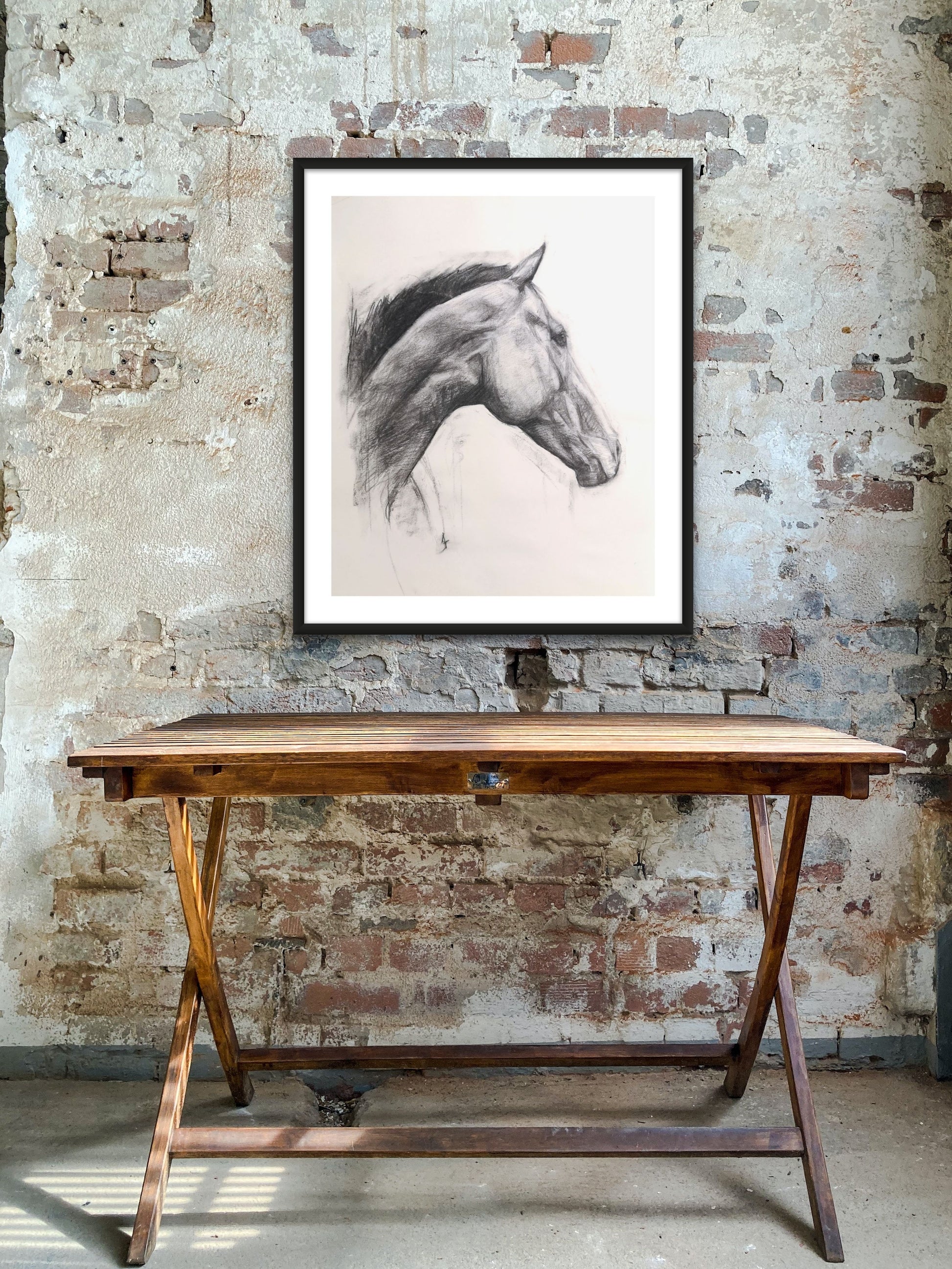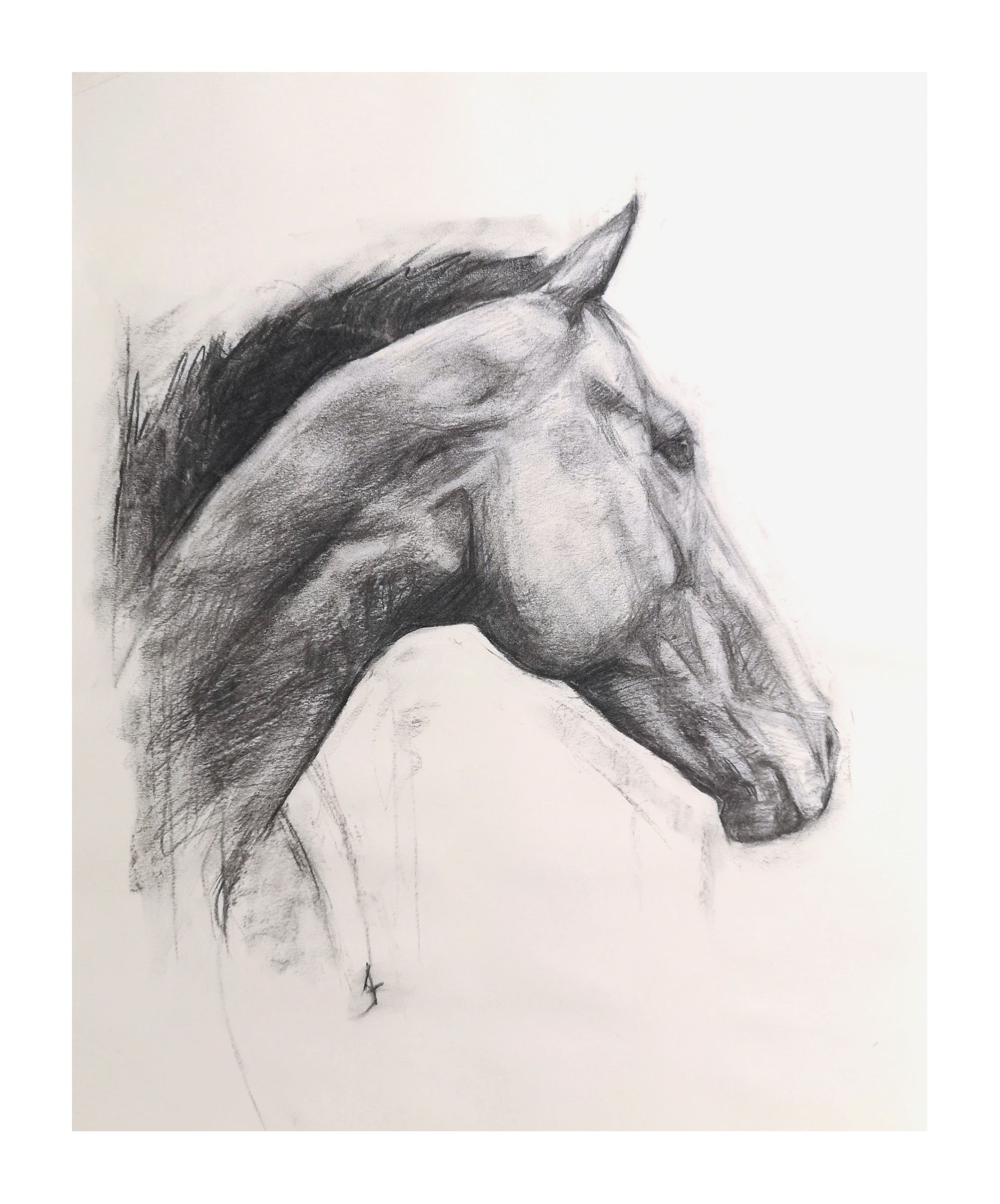 (2023) Original charcoal drawing of a beautiful thoroughbred horse on 95gsm sketch paper, inspired by my long time love of horses.